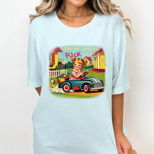 Funny Retro Style Graphic Tee, On My Way To Fun T-Shirt, Vintage Cartoon T-Shirt, Unique Statement Tee
