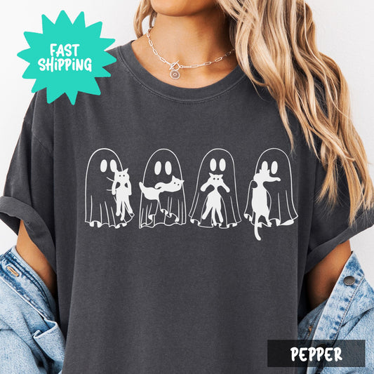 Cute Ghost Cats Graphic Comfort Colors T-Shirts