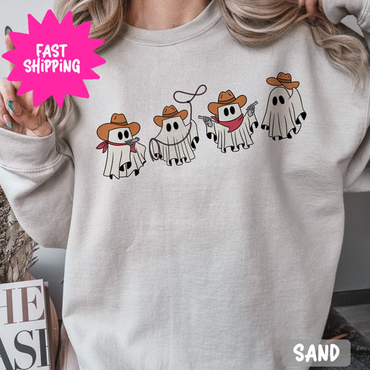 Cute Ghosts Cowboy Theme Graphic Print Sweatshirts