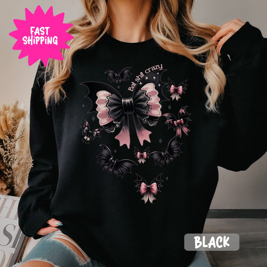 Bat Shit Crazy Bow and Bat Design Sweatshirts