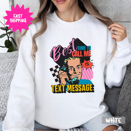 Best Time to Call Me Is Text Message Crewneck Sweatshirt, Graphic Print, Trendy Retro Sweatshirt for Casual Wear