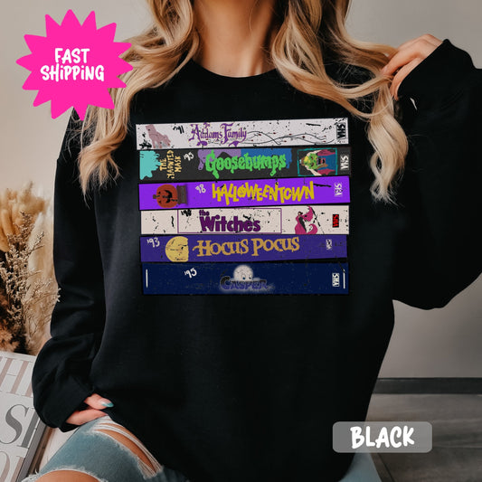 Retro Halloween Movie Sweatshirt, Vintage VHS Cover Design, Halloween Town, Hocus Pocus, Goosebumps, 90s Movie Crewneck