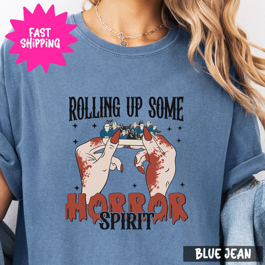 Rolling Up Some Horror Spirit Comfort Colors T-Shirt, Halloween Season Tee, Spooky Graphic Shirt, Scary Movie T-Shirt