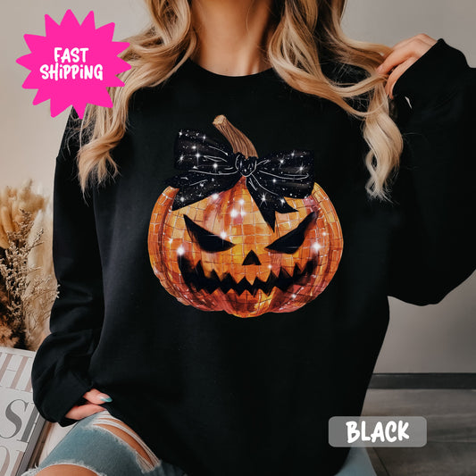 Scary Pumpkin with Black Bow Halloween Theme Sweatshirts
