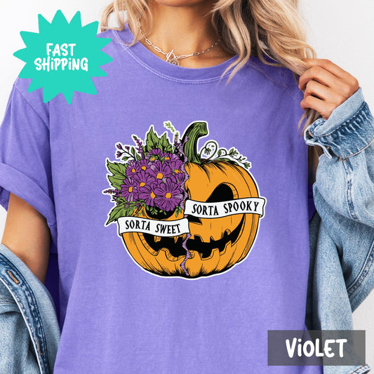 Sorta Spooky Sorta Sweet Pumpkin T-Shirt, Comfort Colors T-Shirt, Halloween Graphic Tee, Fall Attire, Floral Pumpkin Shirt