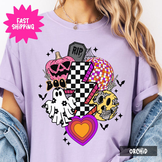 Spooktacular Comfort Colors T-Shirt Featuring Vibrant Halloween Graphics, Ghost, Pumpkin, And More