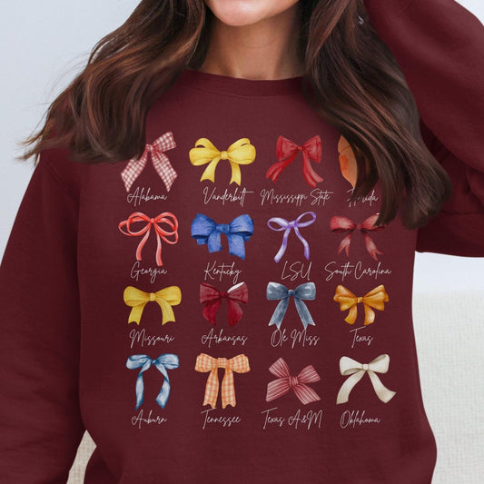 Sweatshirt Featuring Cute Bow Designs for All Your Favorite Schools and Teams