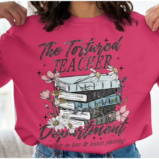 The Tortured Teacher Sweatshirt Featuring Vintage Books and Flowers Design