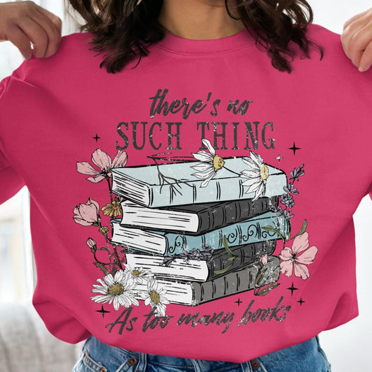 There's No Such Thing As Too Many Books Sweatshirt, Floral Book Design