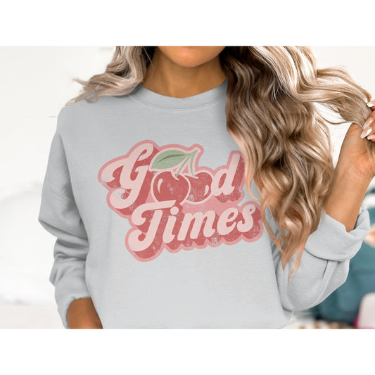 Vintage Good Times Sweatshirt, Retro Cherry Design, Graphic Sweateshirt, Distressed, Cozy Casual Wear, Nostalgic Top