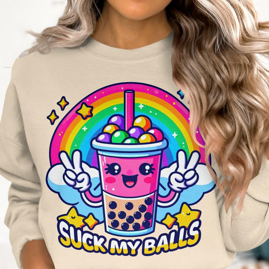 Cute Boba Drink With Rainbow and Stars Graphic Sweatshirt