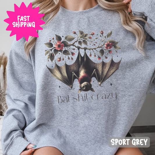 Cute Bat Hanging on Branch Bat Shit Crazy Sweatshirts