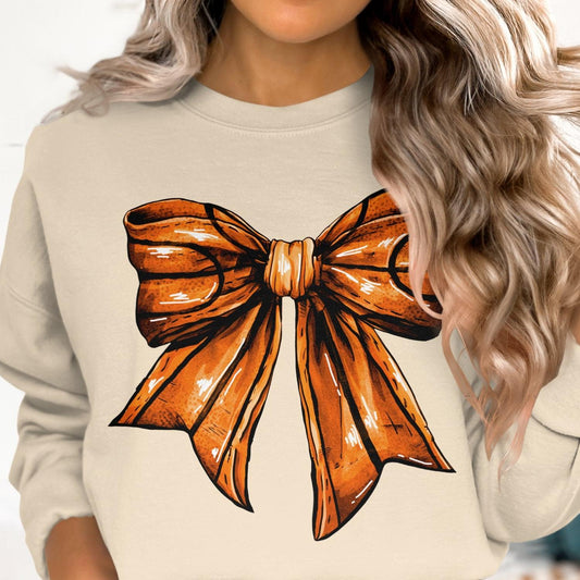 Cute Basketball Bow Graphic Sweatshirt, Vintage Style Orange Ribbon Sweatshirt, Casual Fashion Jumper