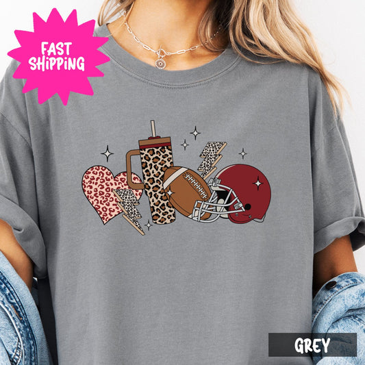 Leopard Print Heart Football Tumbler Lightning Comfort Colors T-Shirt, Sports Lover Graphic Tee, Trendy Athletic Shirt