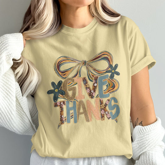 Give Thanks Festive Autumn Floral Bow Design Comfort Colors T-Shirt