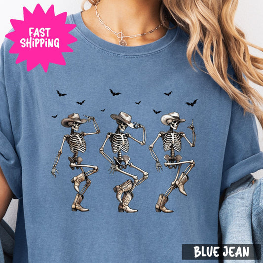 Funny Dancing Skeletons Comfort Colors T-Shirt, Halloween Skeleton Tee, Cowboy Skeleton Graphic Shirt