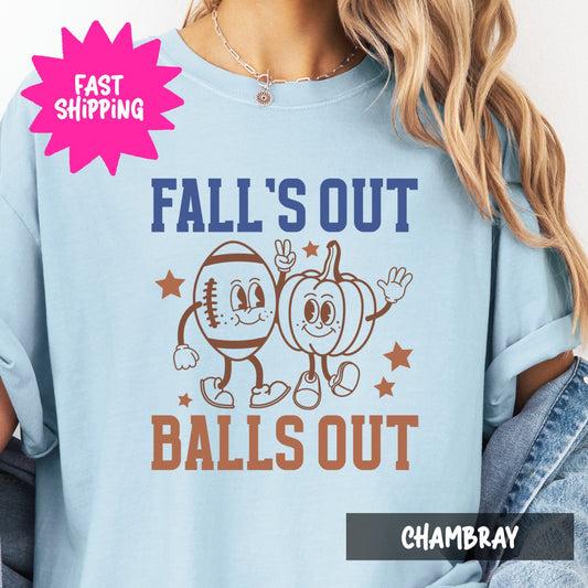 Fall's Out Balls Out Comfort Colors T-Shirt, Funny Fall Season Sports T-Shirt, Cute Pumpkin Football Tee