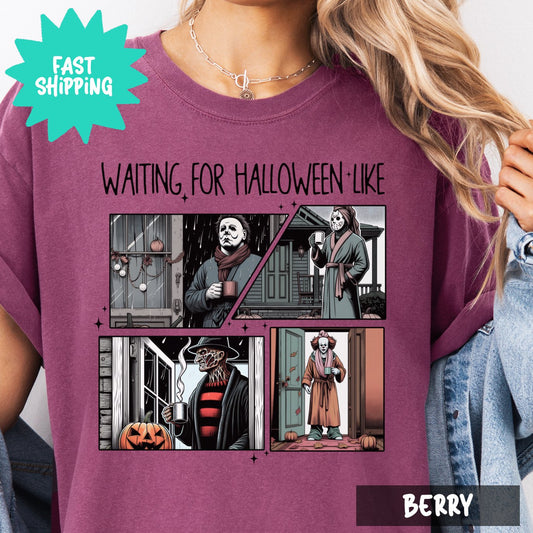 Halloween T-Shirt, Funny Horror Characters Shirt, Spooky Season Tee, Waiting For Halloween, Comfort Colors T-Shirt