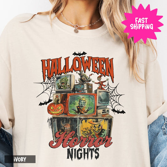 Halloween Horror Nights Comfort Colors T-Shirt, Vintage Halloween TV Monsters T-Shirt, Spooky Halloween T-Shirt