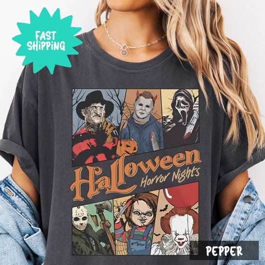Halloween Horror Nights, Comfort Colors T-Shirt, Classic Horror Movie Characters T-Shirt, Halloween Scary Movie Shirt