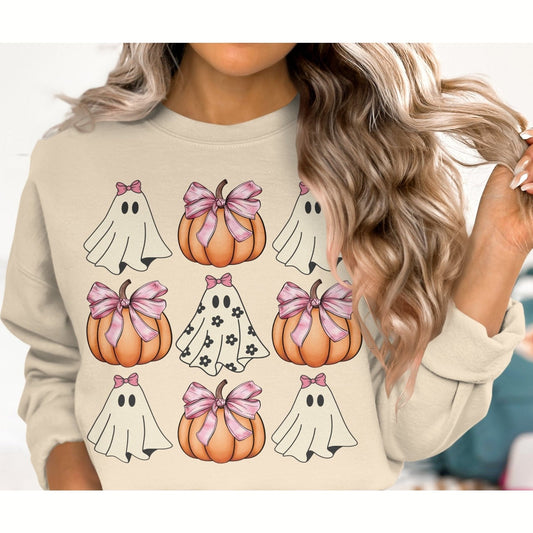 Cute Halloween Pumpkins and Ghosts Women's Sweatshirt