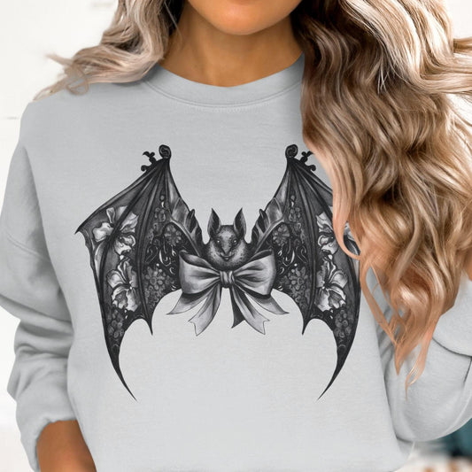 Gothic Bat With Floral Design Halloween Sweatshirt