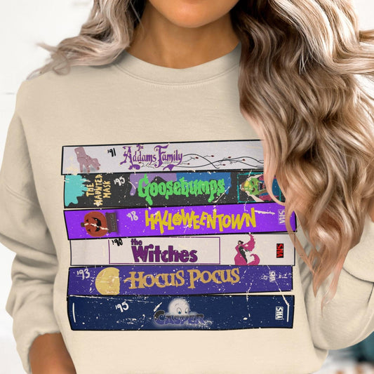 Retro Halloween Movie Sweatshirt, Vintage VHS Cover Design, Halloween Town, Hocus Pocus, Goosebumps, 90s Movie Crewneck