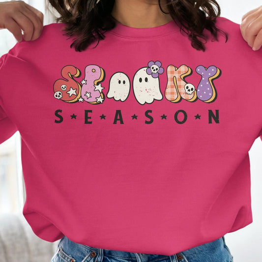 Spooky Season Sweatshirt, Cute Ghost Graphic Tee for Halloween, Fall Apparel, Perfect Gift for Halloween Lovers, Soft Cotton