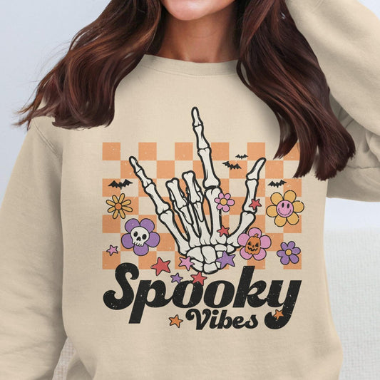 Spooky Vibes Skeleton Hand Flowers Halloween Sweatshirt for Fun Celebrations