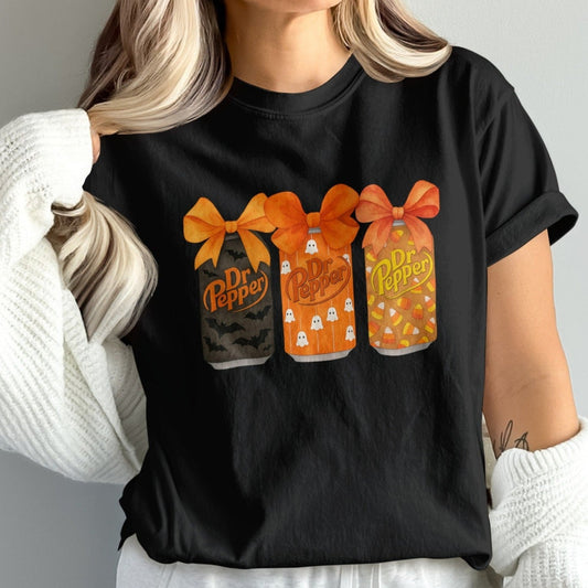Halloween Dr Pepper T-Shirt, Soda Pop Bats Ghosts Candy Corn, Spooky Season Shirt, Cute Bows Tee, Unique Graphic Tee, Comfort Colors T-Shirt