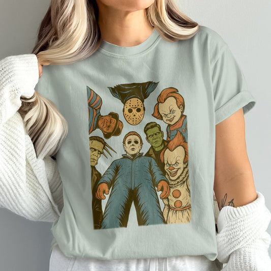 Horror Movie Villains T-Shirt, Scary Movie Icons Tee, Halloween Character Shirt, Spooky Season Apparel, Horror Fan Gift Comfort Colors T-Shirt