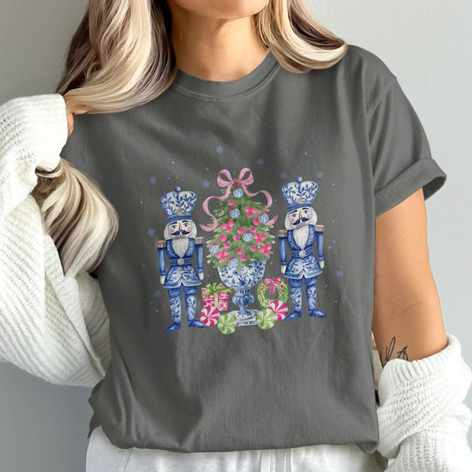 Festive Nutcracker and Christmas Tree Graphic Comfort Colors T-Shirts