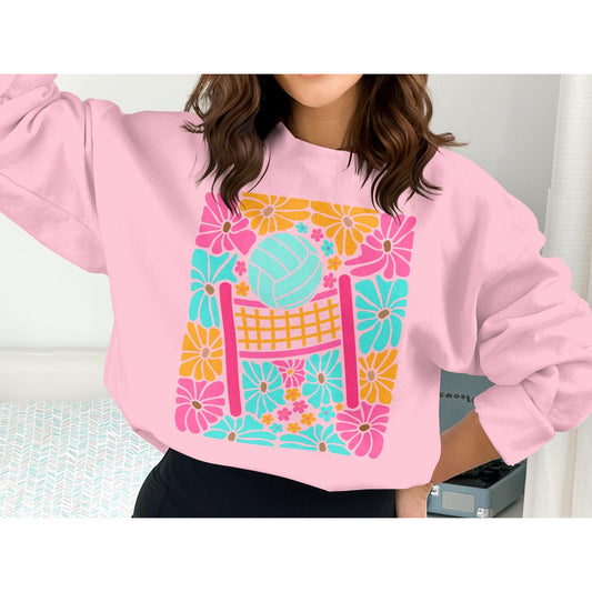 Vibrant Volleyball Net with Floral Design Sweatshirts