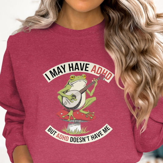 Funny ADHD Frog Playing Banjo Sweatshirt, Quirky Frog Musician Design, ADHD Awareness Apparel, Unique ADHD Shirt Gift