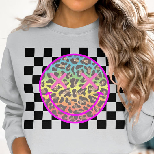 Neon Rainbow Smiley Face with Crossed Eyes Sweatshirt