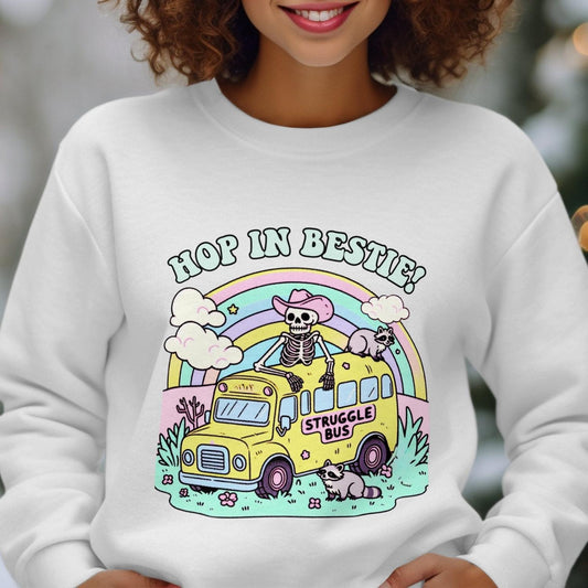 Hop In Bestie Struggle Bus Graphic Design Sweatshirts