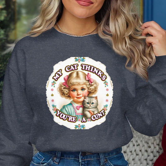 Playful Vintage Cat Humor Crewneck Pullover Sweatshirts