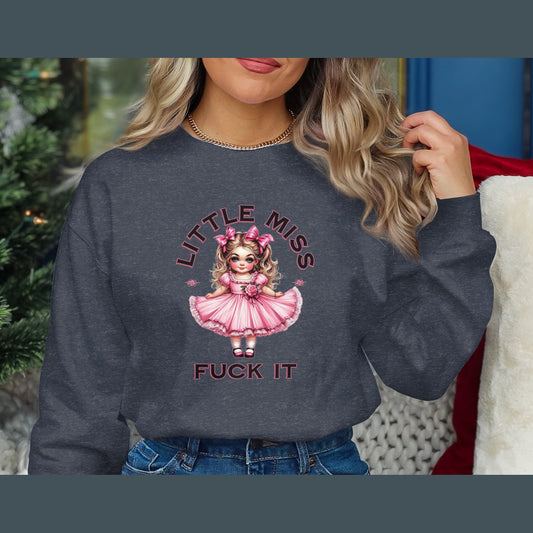 Little Miss Fuck It Vintage Pullover Crewneck Sweatshirts
