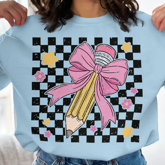 Cute Pencil With Pink Bow And Flowers Design Sweatshirt For Creative Minds