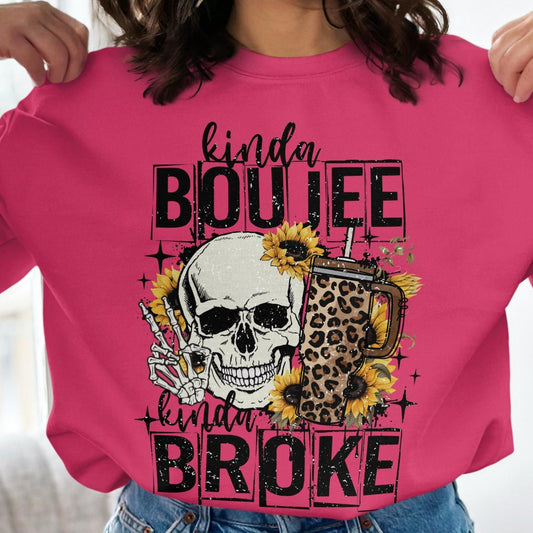 Kinda Boujee Skull Sweatshirt With Sunflowers And Leopard Print Drink For Trendy Style