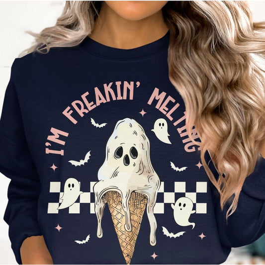 I'm Freakin' Melting Ice Cream Cone Ghosts Design Sweatshirt for Fun Lovers