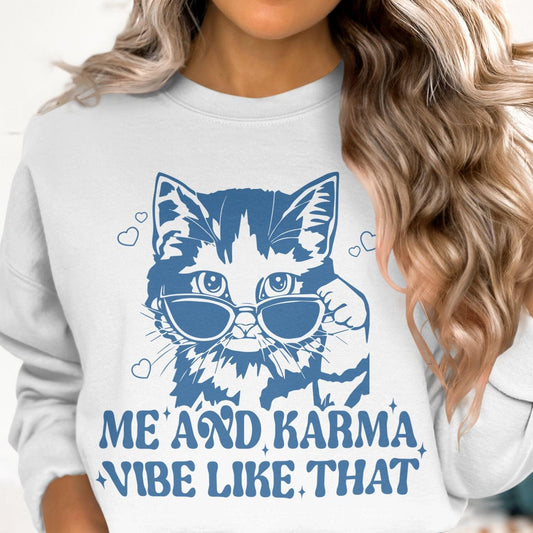 Me And Karma Vibe Like That - Cute Cat With Sunglasses Sweatshirt