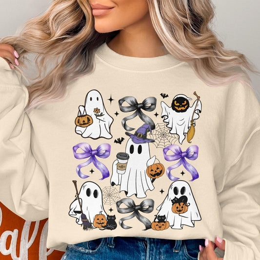 Ghost Theme Sweatshirt, Cute Ghosts Design, Fun Halloween Sweater, Cozy Witchy Apparel, Spooky Season Clothing