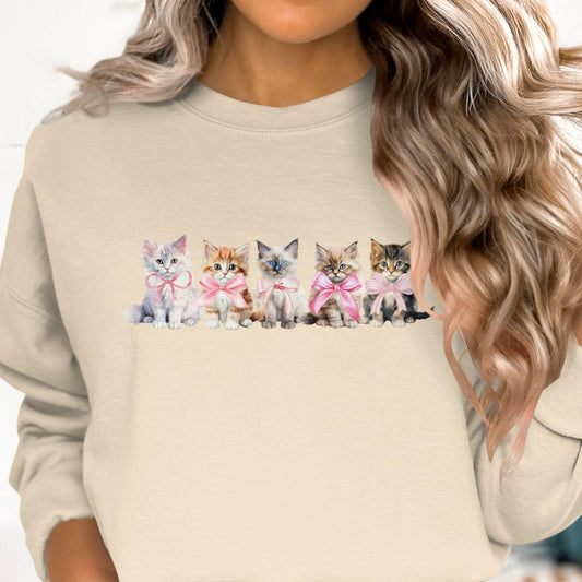Soft Girl Aesthetic Kittens with Bows Graphic Crewneck Sweatshirt
