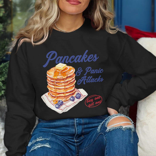 Pancakes and Panic Attacks Funny Sweatshirt, Humor Graphic Unisex Sweatshirt, Cozy Gift for Food Lovers
