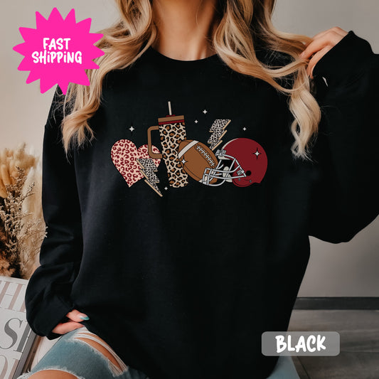 Football Leopard Print Crewneck Sweatshirt, Cozy Graphic Sweatshirt for Sports Fans, Trendy Fall Sportswear