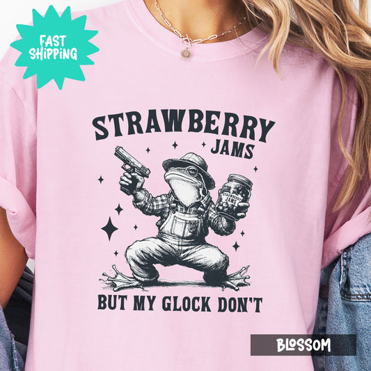 Funny Frog Gun Meme Shirt, Strawberry Jams Graphic Tee, Humorous Saying Comfort Colors T-Shirt, Unique Gift for Him or Her