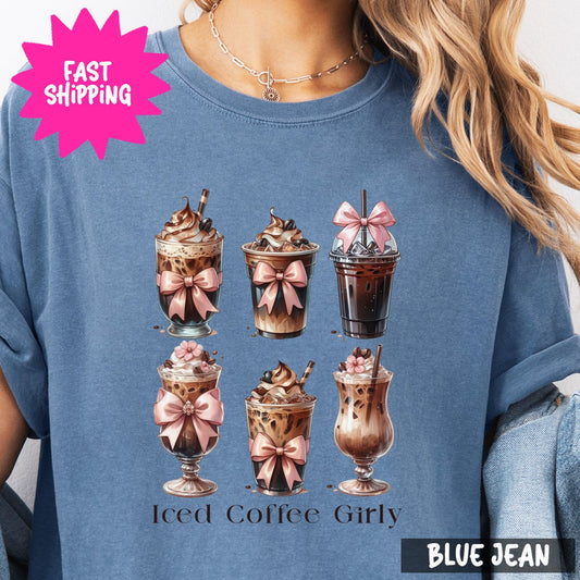 Iced Coffee Girly Design Comfort Colors T-Shirt, Cute Coffee Lover Tee, Girly Coffee Graphic Top, Fun Coffee Shirt, Gift for Her