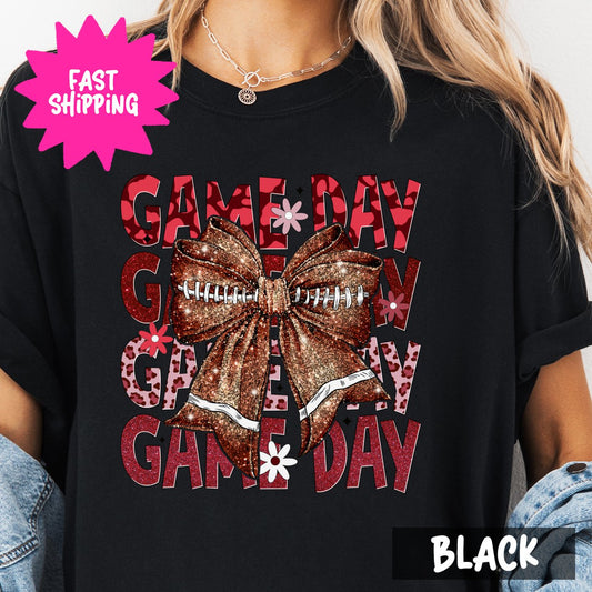 Game Day Comfort Colors T-Shirt, Cute Football Shirt, Bow Graphic Tee, Sports Day T-Shirt, Cheerleader Top