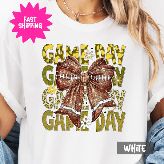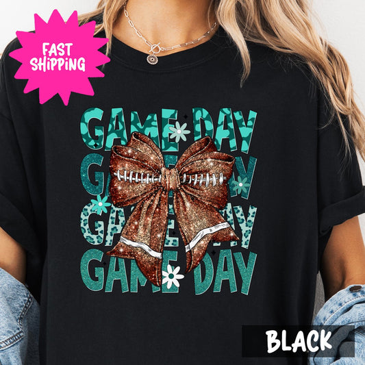 Game Day Shirt, Football Bow Graphic Tee, Comfort Colors T-Shirt, Sports Game Day T-Shirt, Cheerleader Game Day Shirt